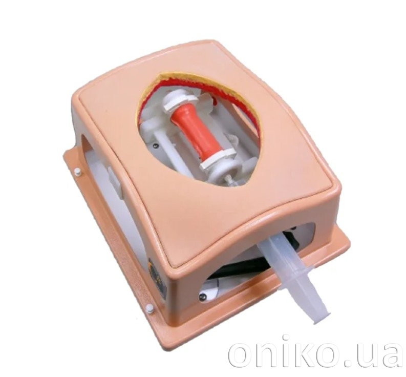 A protective transport and storage case designed for safe handling and organization of cardiac training models and components. The case ensures secure positioning of delicate simulation elements, protecting them from damage during transport and storage while maintaining readiness for training use.