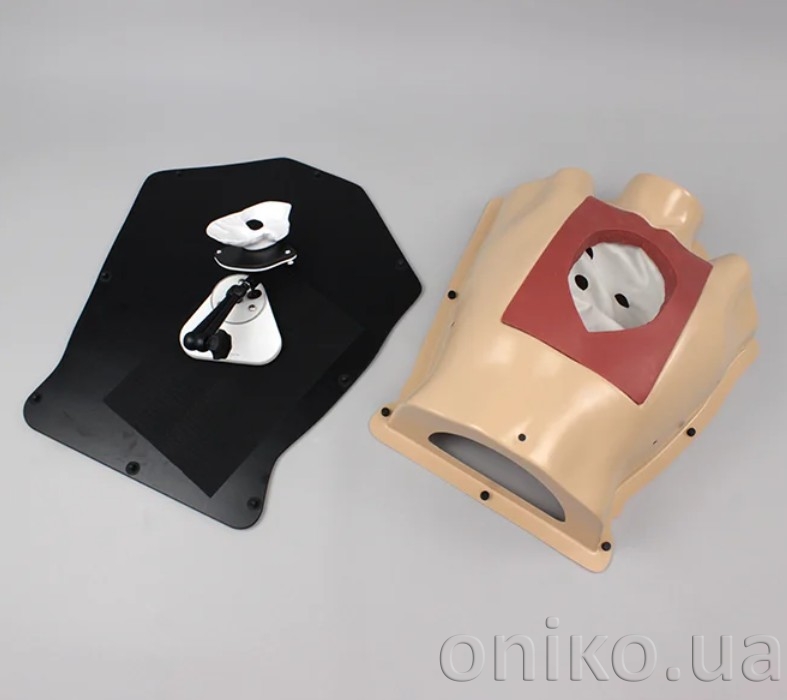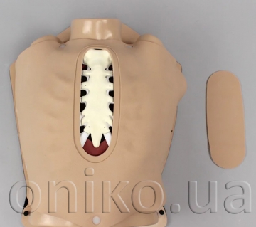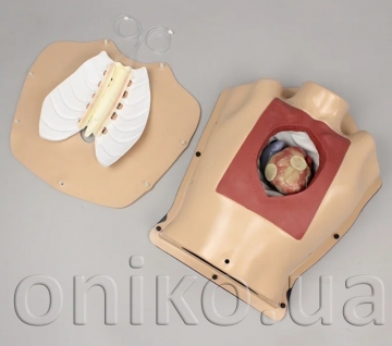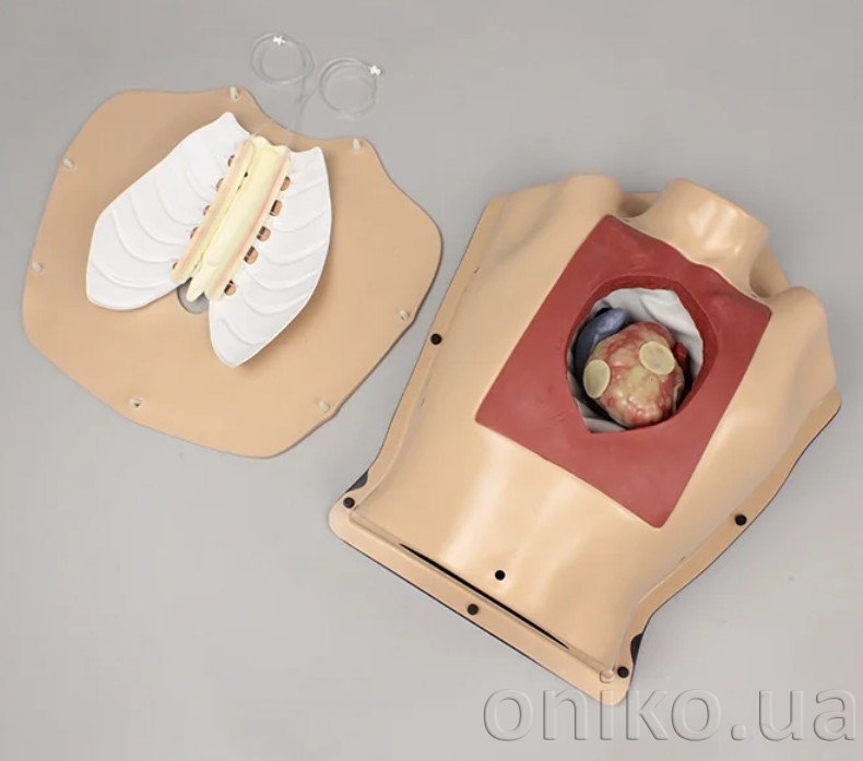 Кардіоторакальний хірургічний тренажер високої точності забезпечує повну анатомічну платформу для навчання та практики хірургічних методик при аортокоронарному шунтуванні на зупиненому серці від розрізу шкіри до завершення операції. Тренажер дозволяє виконувати стернотомію, включаючи визначення анатомічних орієнтирів на дотик, розріз шкіри, розтин грудини та її подальше закриття дротом. Змінні ліва та права внутрішні грудні артерії високої точності кріпляться до внутрішньої сторони грудини та дозволяють відпрацьовувати торакоскопічне виділення, дисекцію та забір трансплантата. Змінний епікардіальний рукав може бути розсічений для відкриття цільових коронарних артерій для аортокоронарного шунтування.