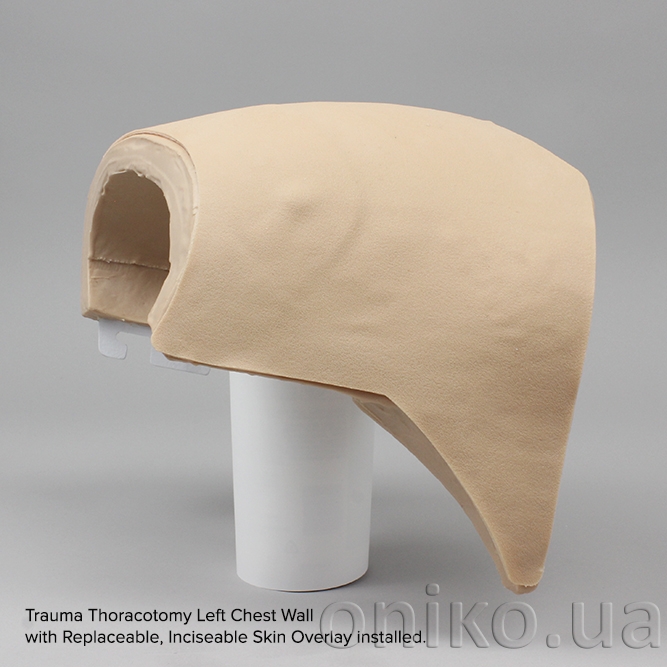 Накладка шкіри для травматичної торакотомії з можливістю розрізу призначена для навчання та демонстрації процедур травматичної торакотомії. Накладку можна розрізати під час виконання процедури.