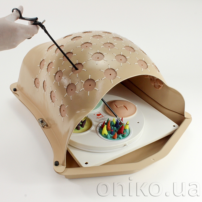 Інсуфльований абдомінальний модуль з портами призначений для навчання та демонстрації лапароскопічних процедур. Модуль містить порти для введення інструментів.