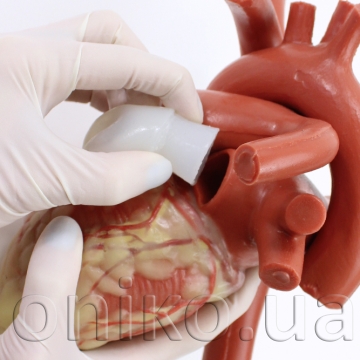 Змінне вушко лівого передсердя є змінним компонентом для моделей серця та кардіохірургічних тренажерів. Модель відтворює анатомію вушка лівого передсердя (Left Atrial Appendage, LAA) і призначена для відпрацювання процедур його закриття, резекції та накладання швів.