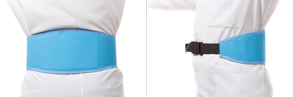 The belt for aprons is dressed over the two-sided heavy apron to distribute the part of weight from shoulders to waist.