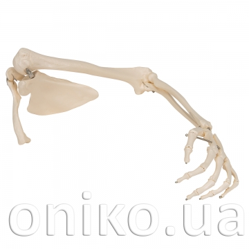 This Arm Skeleton model with scapula and clavicle is wire mounted, slightly flexible through fingers. Flexible elbow and shoulder joints.