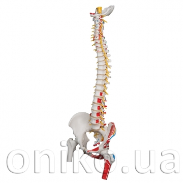 This high quality flexible spine with femur heads and painted muscles is a great teaching tool for the anatomy of the human spinal column.