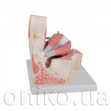 This large anatomical human eye model shows the optic nerve in its natural position in the bony orbit of the eye (floor and medial wall). At three times life size this eye model is great for anatomical demonstrations.