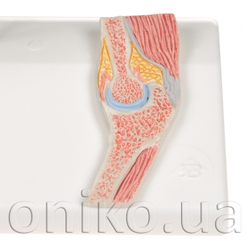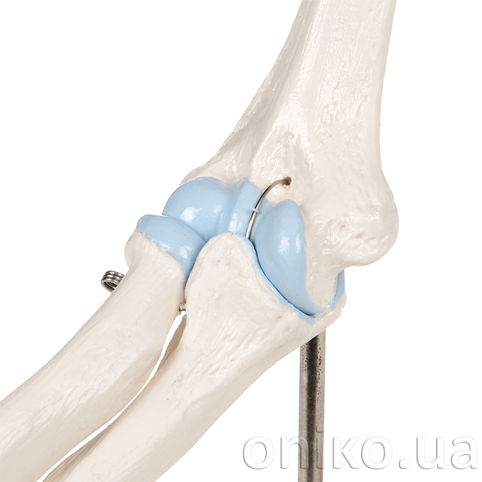 The mini elbow joint has been reduced to a half of the natural size but has kept all of the functionality of larger elbow joint models. In addition to the external anatomical structures of the elbow joint, using the superb new elbow joint cross-section mounted on the base, the medical or teaching professional now has the possibility to explain what is happening from "within" the elbow joint.