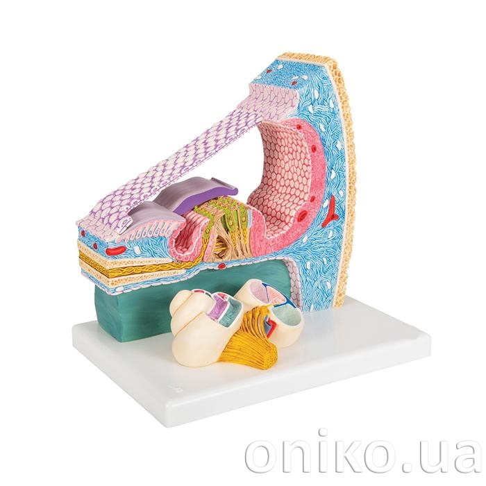 The model shows a three dimensional section through the organ of Corti, the site of the sense of hearing in the inner ear in humans.