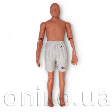Developed for lifelike adult or juvenile patient handling, transportation, and extrication training. This manikin can be safely used in situations too hazardous or uncomfortable for human volunteers. Made of tough cast vinyl with zinc-plated steel frame for longevity and rugged use. Manikin is fully articulated for positioning in widely diversified training environments. The manikin can be seated in an automobile, positioned in a smoke-filled room, and immobilized on a stretcher for mountain rescue instruction. Useful for simulating the removal of victims from utility poles, conduits, mine cave-ins, tunnels, and limitless other training procedures. Perfect to use with the Manikin Moulage Kit for casualty simulation. Shipped in sweat pants.