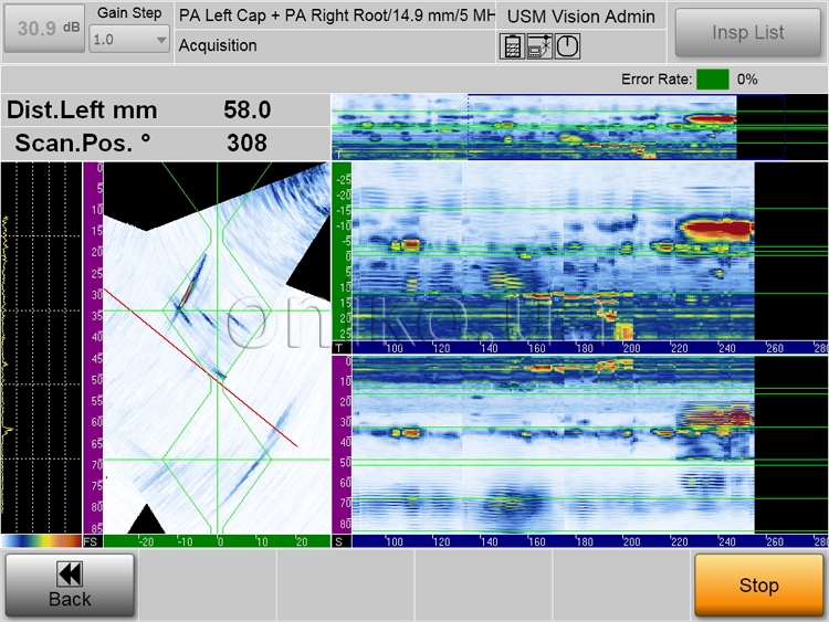 - Інспекційні плани, розміщені в пам'яті приладу, що направляють роботу оператора, підвищують продуктивність контролю. Дефектоскоп автоматично розпізнає тип підключеного перетворювача і завантажує настройки, адаптовані під конкретну задачу контролю, що дозволяє звести до мінімуму людський фактор. Налаштовуэться призначений для користувача інтерфейс на основі сенсорного екрану, зручного для роботи в рукавичках.