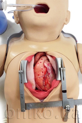 Канюльоване велике серце, що б’ється, має деталізовану зовнішню поверхню з рухом живого людського серця. Модель дозволяє виконувати канюляцію та має збільшений розмір порівняно зі стандартною моделлю серця, що б’ється.