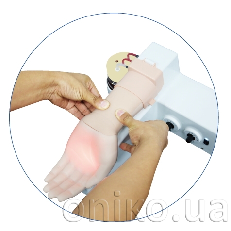 Симулятор забезпечує реалістичне тренування завдяки анатомічній будові моделі та накладці для шкіри, які точно повторюють людську руку.