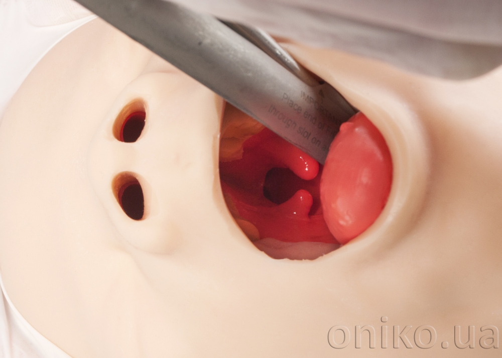 Тренажер имеет уникально сконструированные дыхательные пути новорожденного от 0 до 6 месяцев, поэтому представляет собой реалистичный и анатомически правильный педиатрический манекен для обучения работе на дыхательных путях новорожденного с синдромом Пьера Робена.