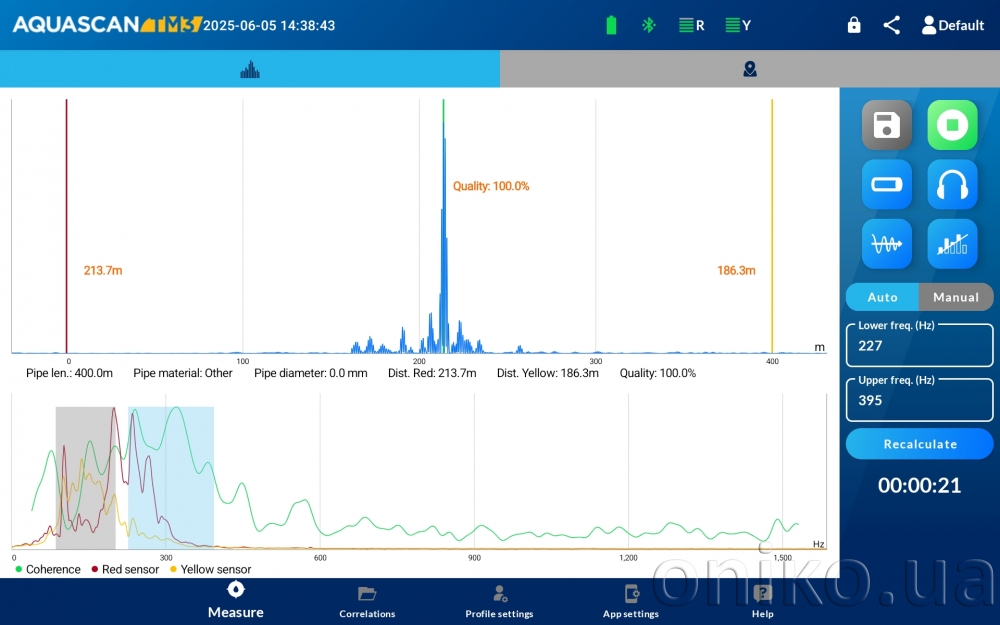 - Преимущества новейших программных технологий: новейшее программное обеспечение коррелятора GUTERMANN AQUASCAN 760T основано на самых современных алгоритмах корреляции в отрасли. Упомянутый «автоматический фильтр» устраняет неоднозначности и обеспечивает быстрые автоматические результаты, включая обнаружение нескольких утечек в одной корреляции. Функция «режекторной фильтрации» удаляет шумы электрической сети из звукового спектра, включая высшие гармоники. Чистый и четкий экран корреляции отображает когерентный анализ, кросс-спектральный анализ и спектры двух датчиков, которые можно легко включать или отключать на дисплее в любой момент времени. Файлы корреляции можно сохранять и экспортировать для безопасного хранения, последующего анализа или повторной корреляции, а также для получения второго мнения третьей стороны или экспертов GUTERMANN. Как и все продукты GUTERMANN, AQUASCAN 760T включает бесплатные обновления прошивки и программного обеспечения на протяжении всего срока службы устройства.